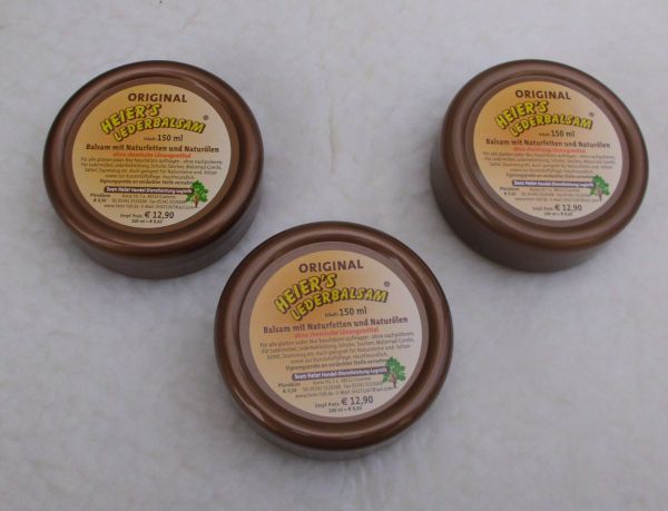 Das Lederpflege – Balsam mit einem Schwamm hauchdünn auftragen, kein Nachpolieren und kein Abbürsten. Ohne chemische Lösungsmittel.
